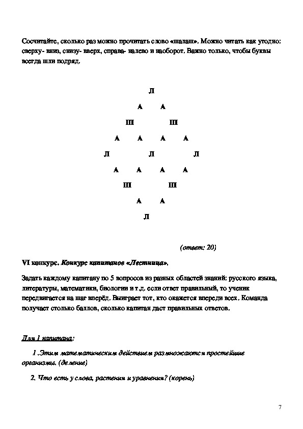 6Сосчитайте, сколько раз можно прочитать слово «шалаш». Можно читать как угодно: