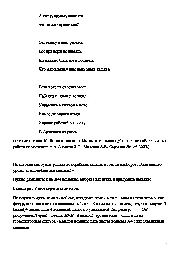 ( стихотворение М. Борзаковского « Математика повсюду!» из книги «Внеклассная