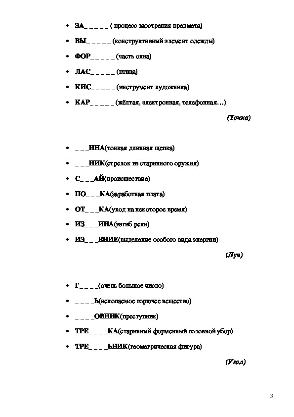 Пользуясь подсказками в скобках, отгадайте сами слова и названия геометрических