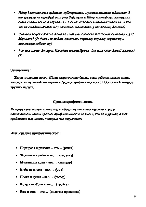 вопросы из шуточной викторины «Среднее арифметическое».) Победившей команде