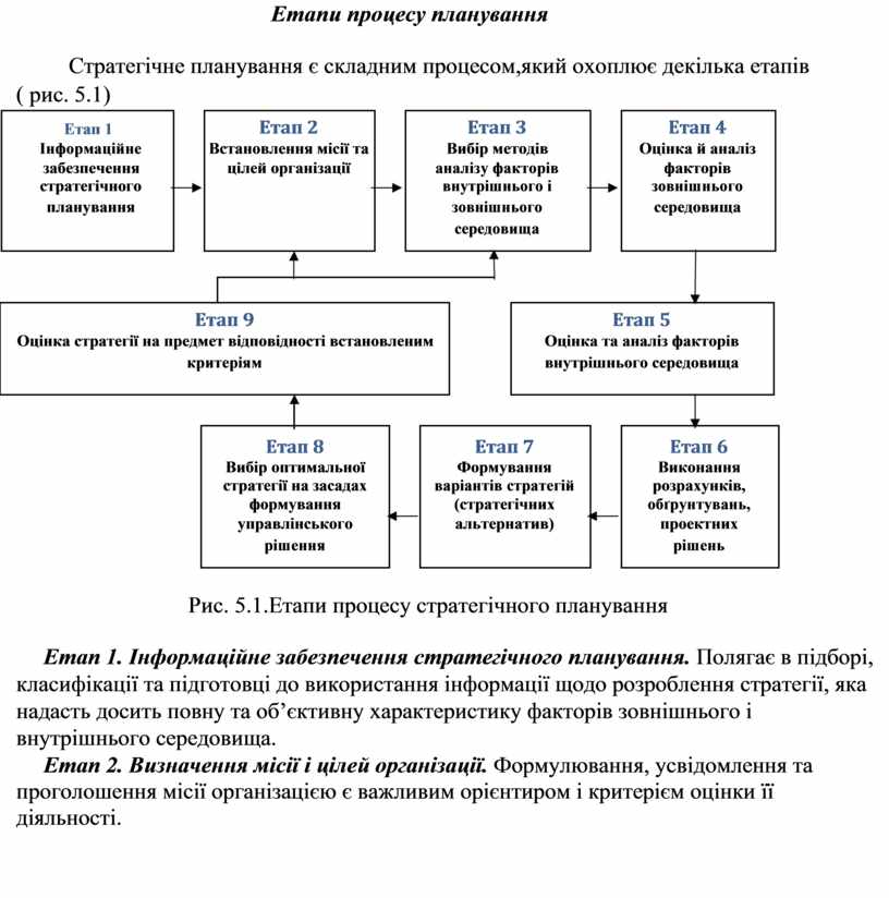 Стратегічне планування є складним процесом,який охоплює декілька етапів ( рис. 5.1)