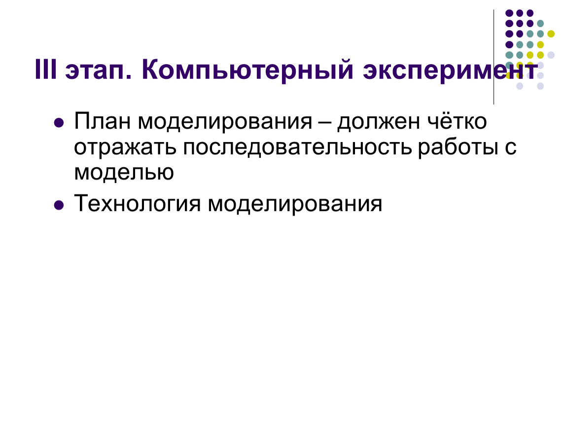 План моделирования – должен чётко отражать последовательность работы с моделью