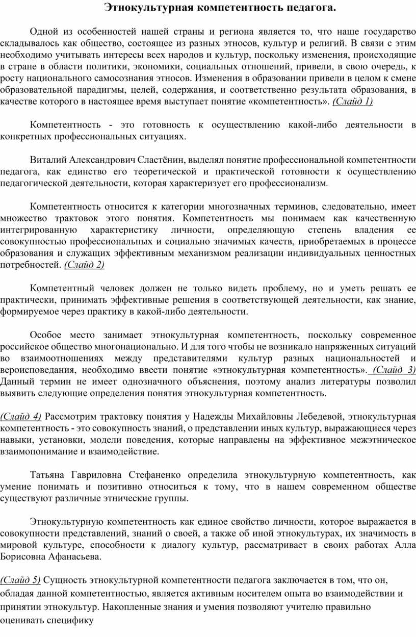 Этнокультурная компетентность педагога.
