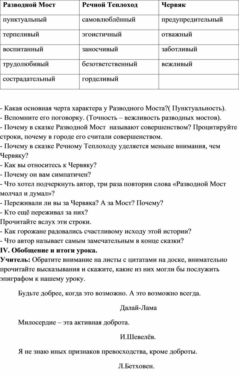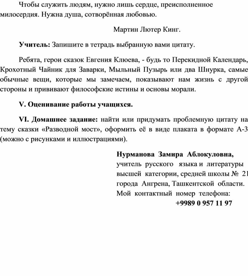 VI. Домашнее задание: найти или придумать проблемную цитату на тему сказки «Разводной мост», оформить её в виде плаката в формате А-3 (можно с рисунками и иллюстрациями).