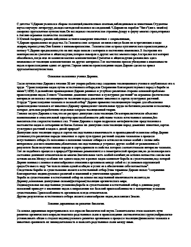 Основные положения учения Дарвина.