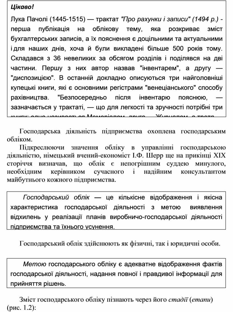 Зміст господарського обліку пізнають через його стадії (етапи) (рис. 1.2):