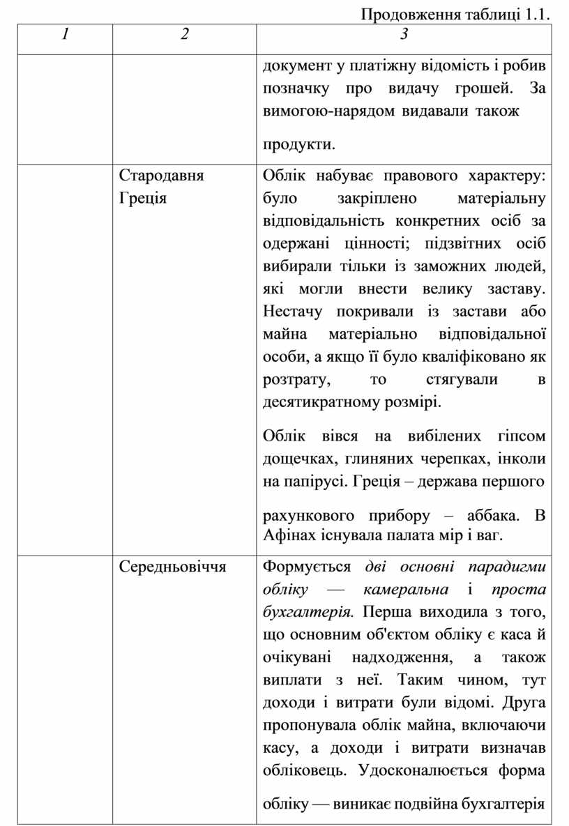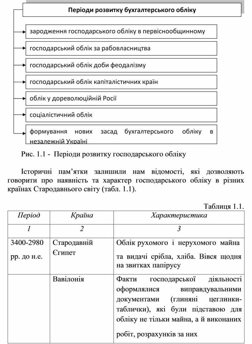 Історичні пам’ятки залишили нам відомості, які дозволяють говорити про наявність та характер господарського обліку в різних країнах Стародавнього світу (табл. 1.1).