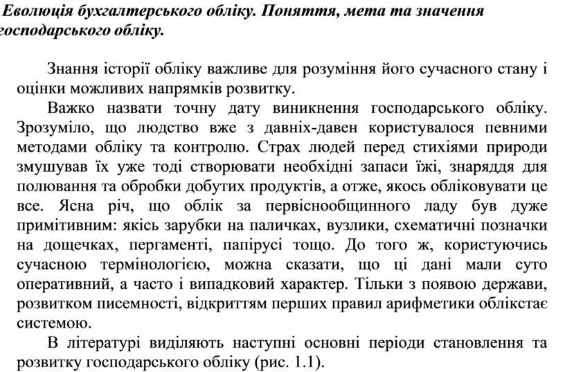 Еволюція бухгалтерського обліку. Поняття, мета та значення господарського обліку.