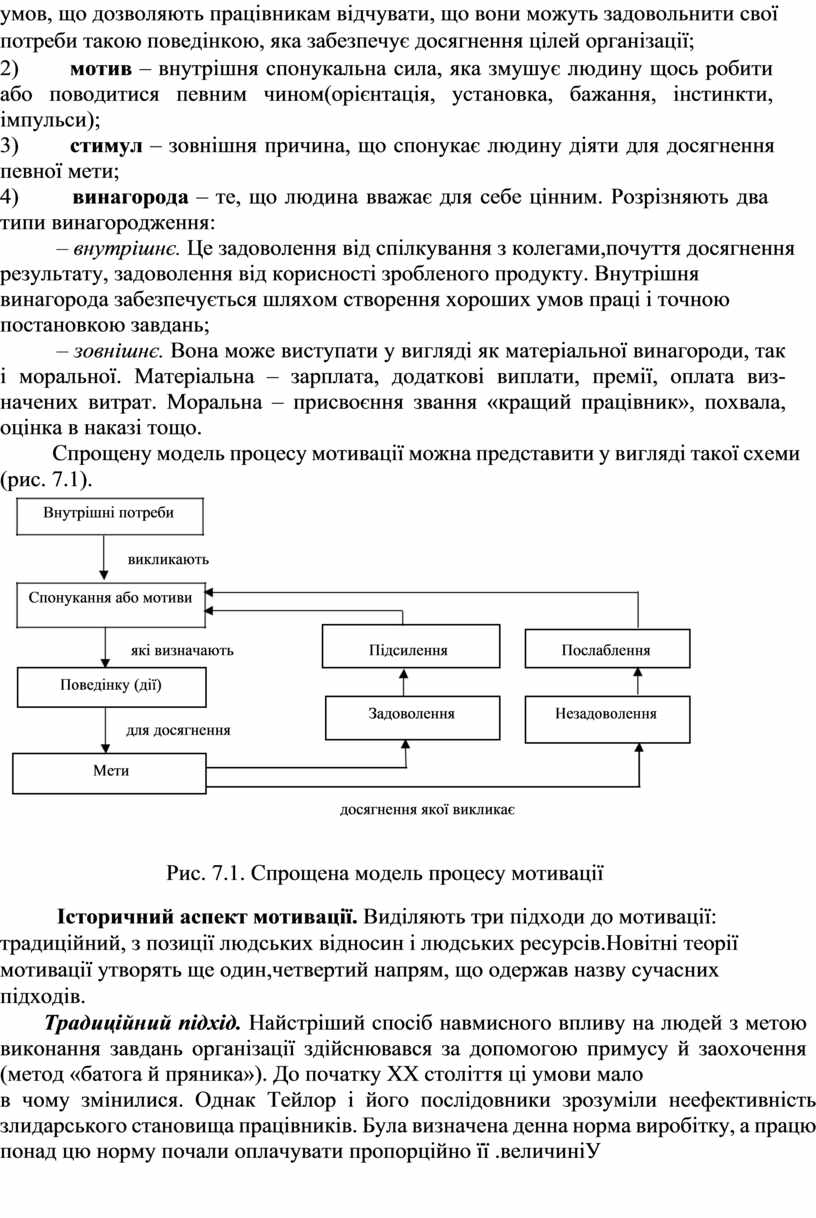 Спрощену модель процесу мотивації можна представити у вигляді такої схеми (рис. 7.1).