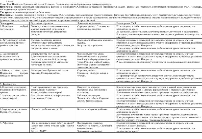 Тема: Ф.А. Искандер «Тринадцатый подвиг Геракла». Влияние учителя на формирование детского характера.