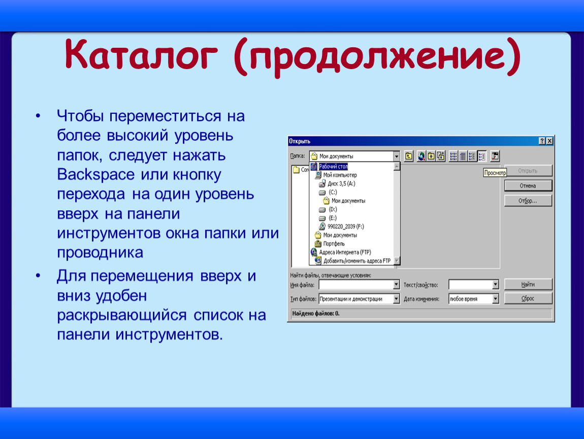 Папка (каталог) – объединяет файлы и вложенные папки
