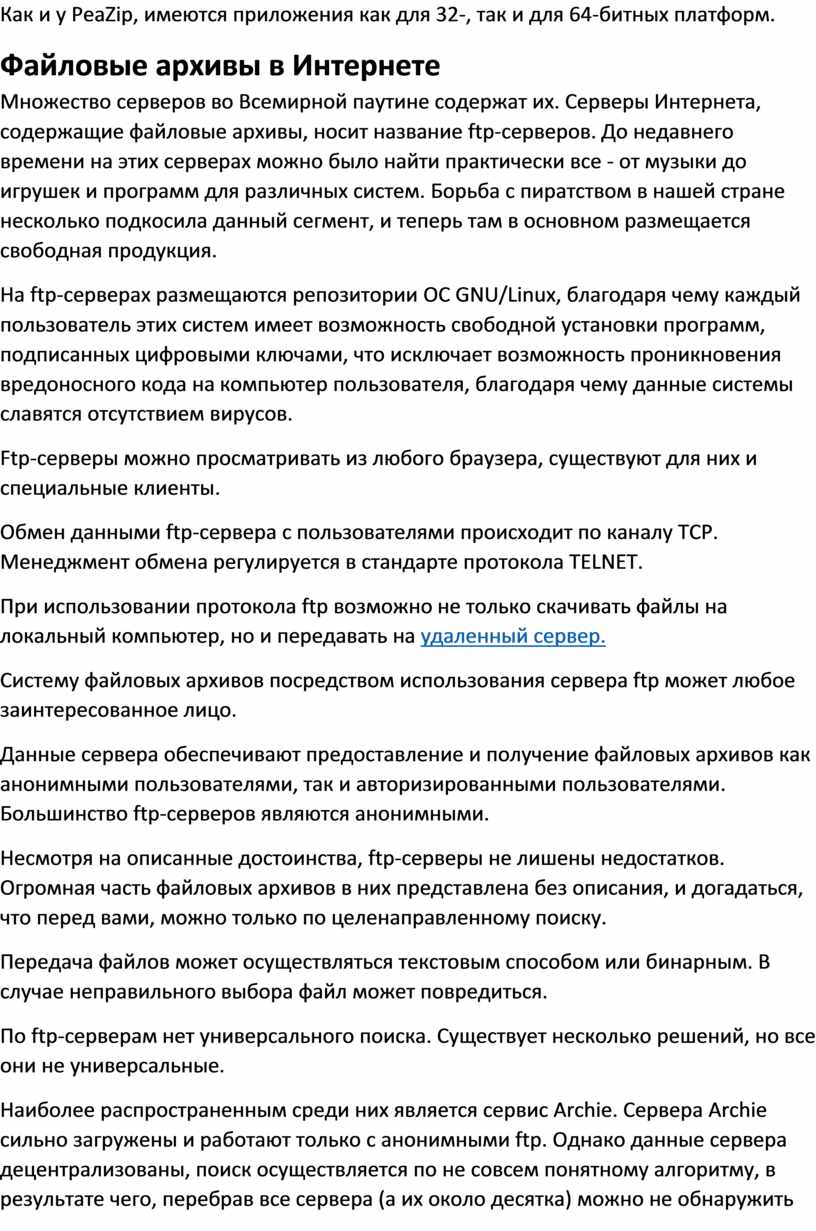 Рассмотрим наиболее распространенные программы файловых архивов.