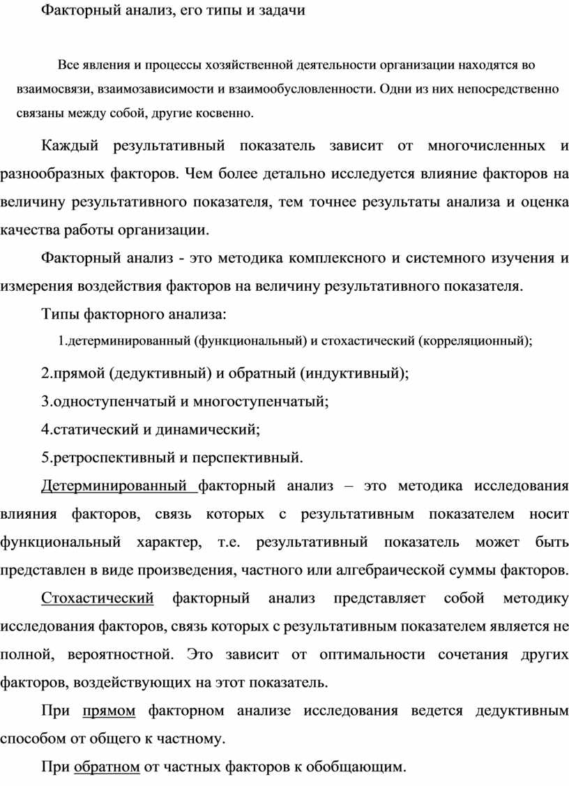 Факторный анализ - это методика комплексного и системного изучения и измерения воздействия факторов на величину результативного показателя.