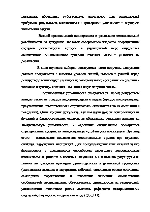 поведении). Опыт несения дежурства, как показали замеры психологических
