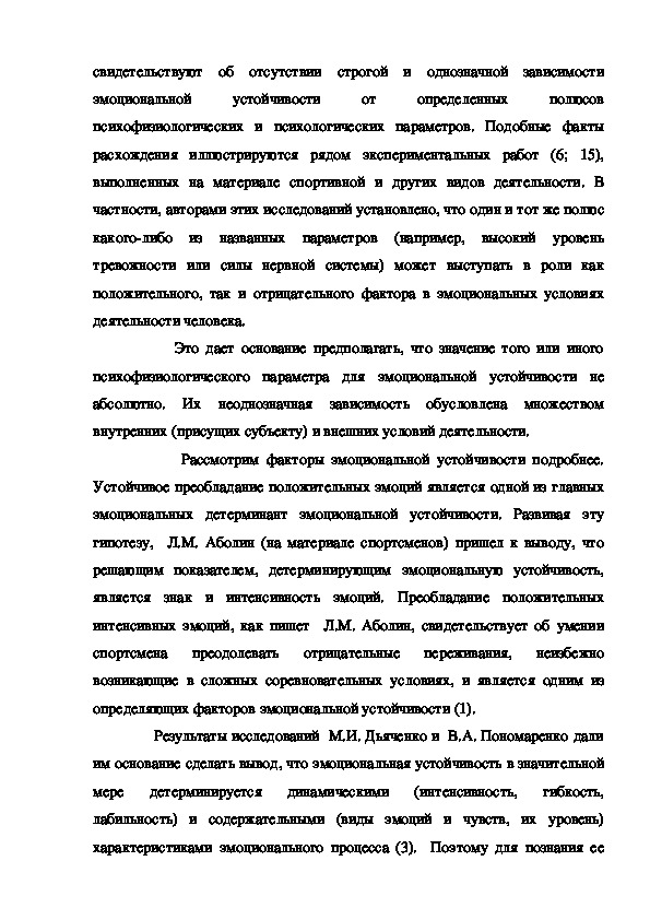 Авторы многих работ включают в понятие эмоциональной устойчивости разные свойства личности и в том числе эмоциональные, однако как детерминанты устойчивости эмоциональные факторы почти не изучены.