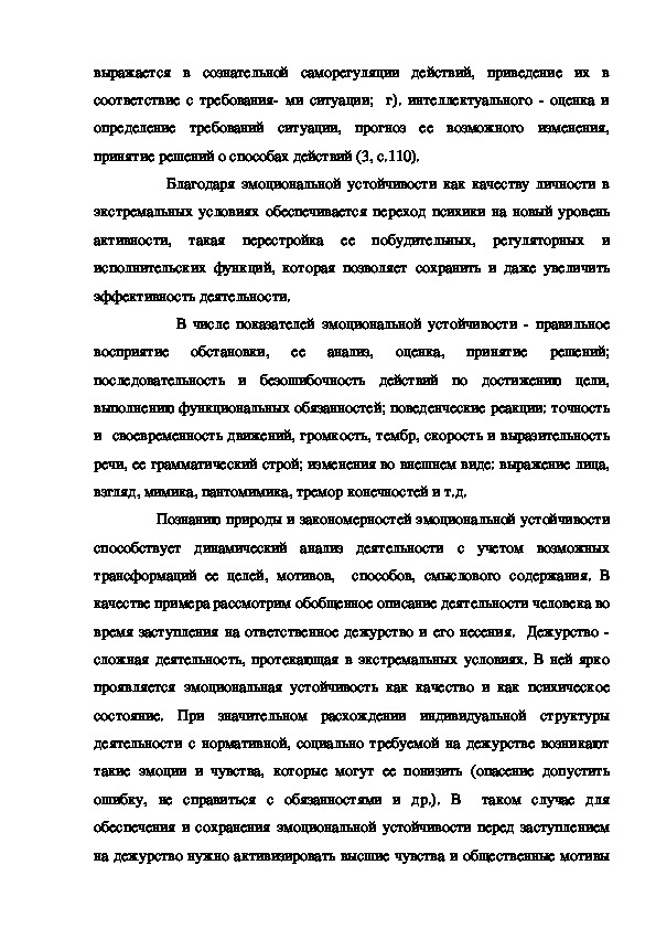 отрицательных влияний экстремальных ситуаций; в). волевого, которыйвыражается в сознательной саморегуляции действий, приведение их в