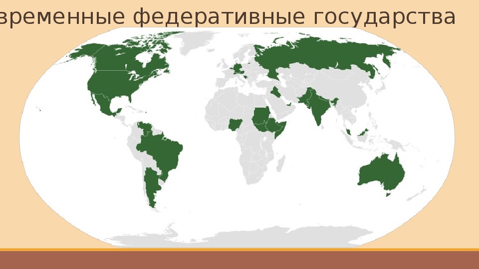Конституционные федерации часто возникают на базе ранее существовавшего унитарного государства (Германия, Бразилия, Россия).