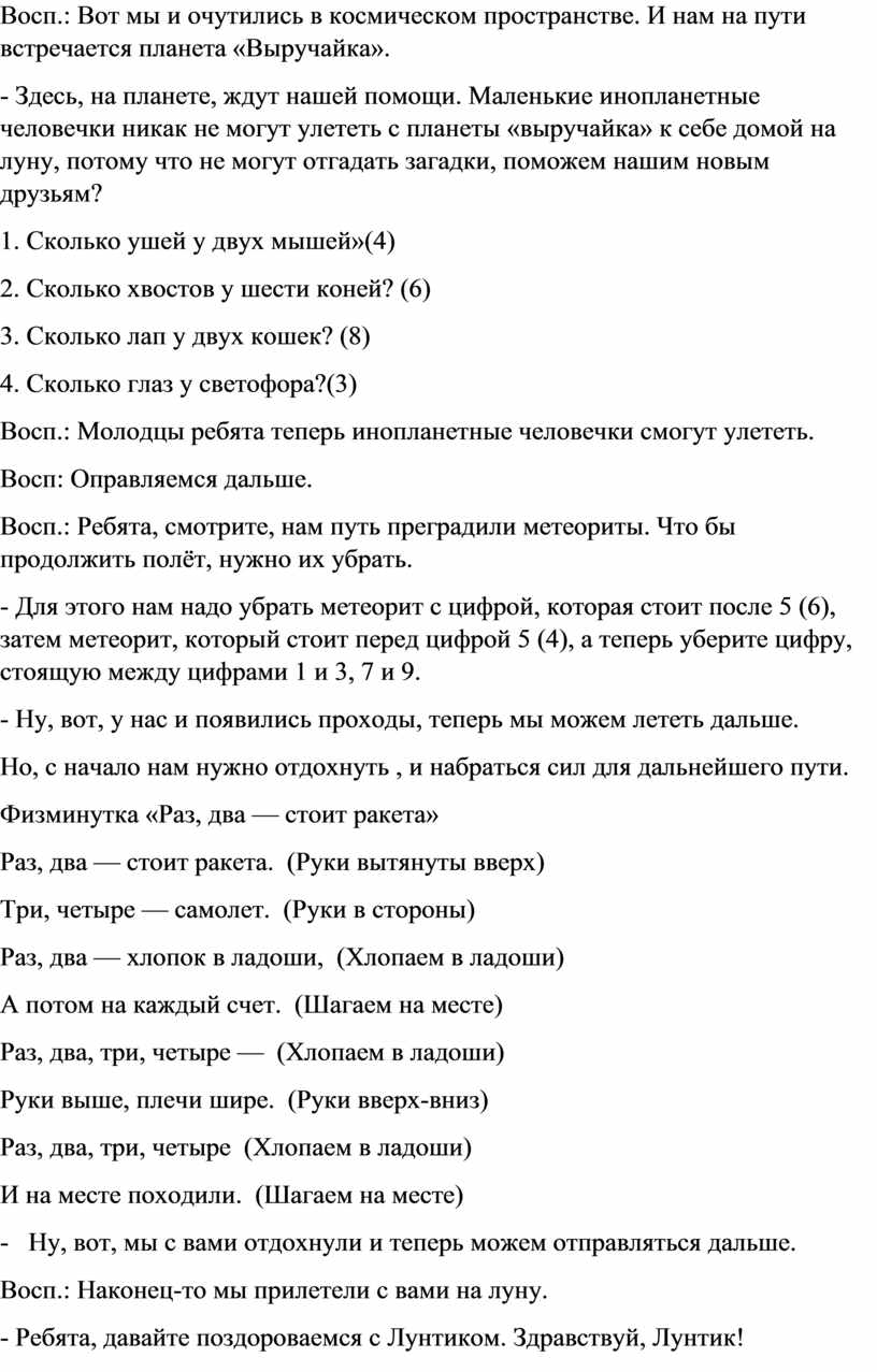 Конспект открытого интегрированного занятия по ФЭМП в старшей группе «Космическое путешествие»