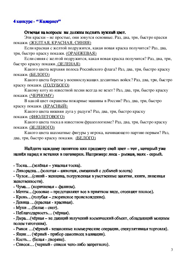 Отвечая на вопросы вы должны поднять нужный цвет.