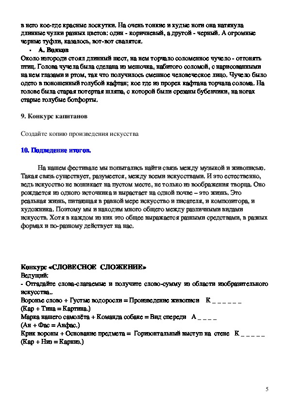 Внеклассное мероприятие по искусству для обучающихся 5-х классов.