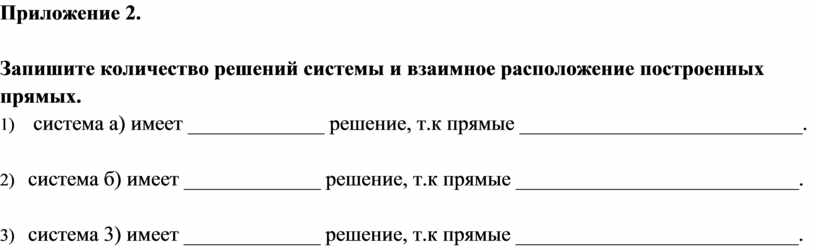 1) система а) имеет _____________ решение, т.к прямые ___________________________.