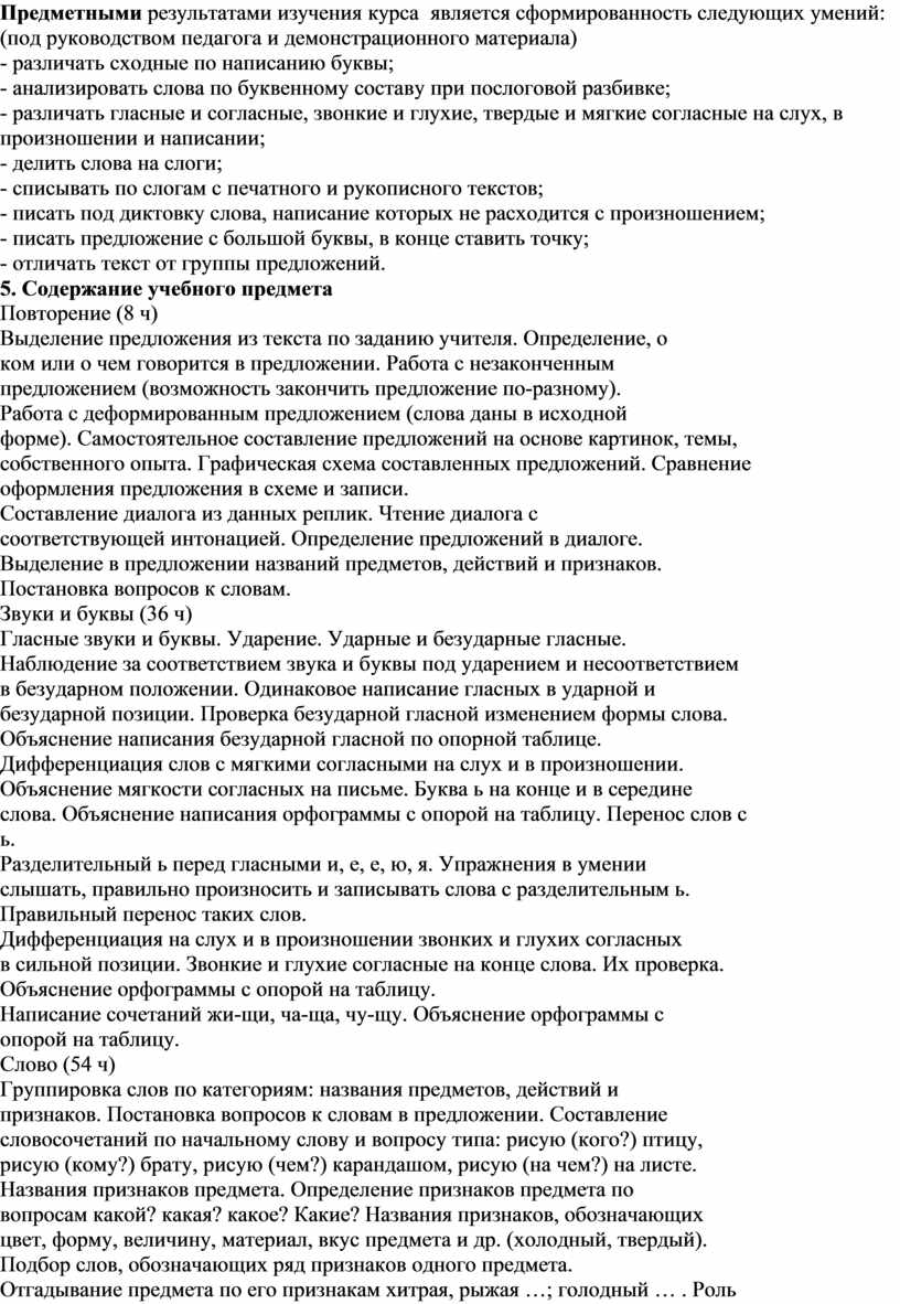 Предметными результатами изучения курса является сформированность следующих умений: (под руководством педагога и демонстрационного материала)