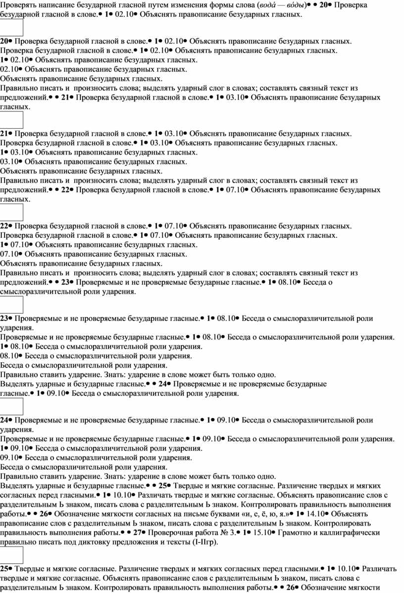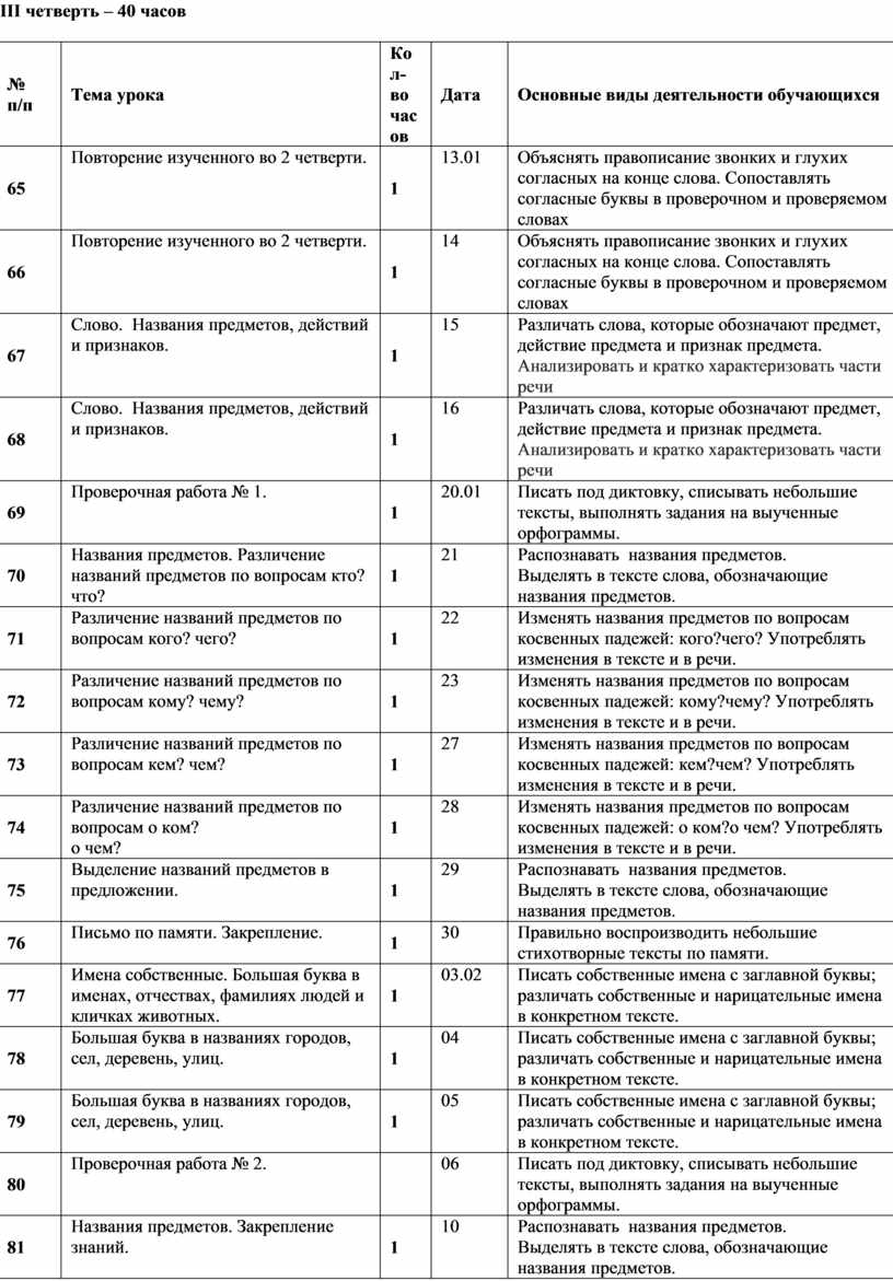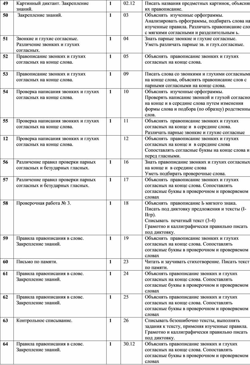 Различать гласные и согласные в слове. Писать слова на изученные орфограммы: проверяемые и непроверяемые гласные в слове, парные звонкие и глухие согласные на конце и в середине слова. |
