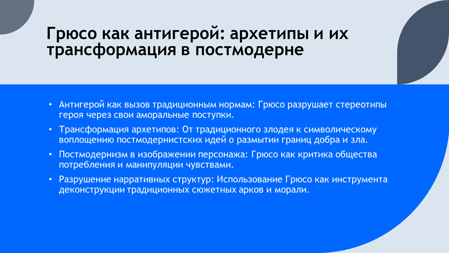 Грюсо как антигерой: архетипы и их трансформация в постмодерне