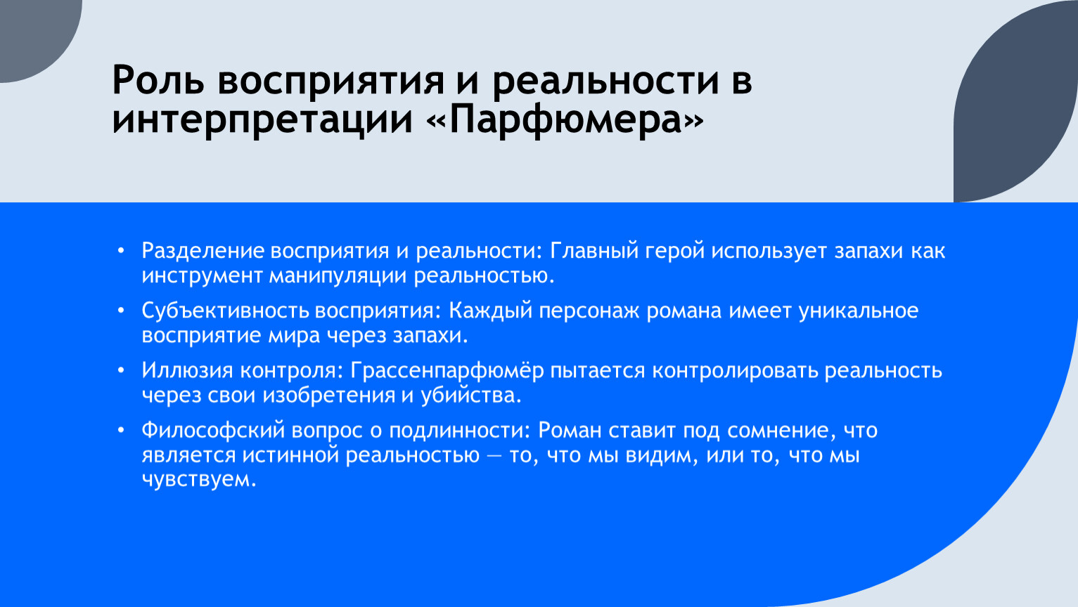 Роль восприятия и реальности в интерпретации «Парфюмера»