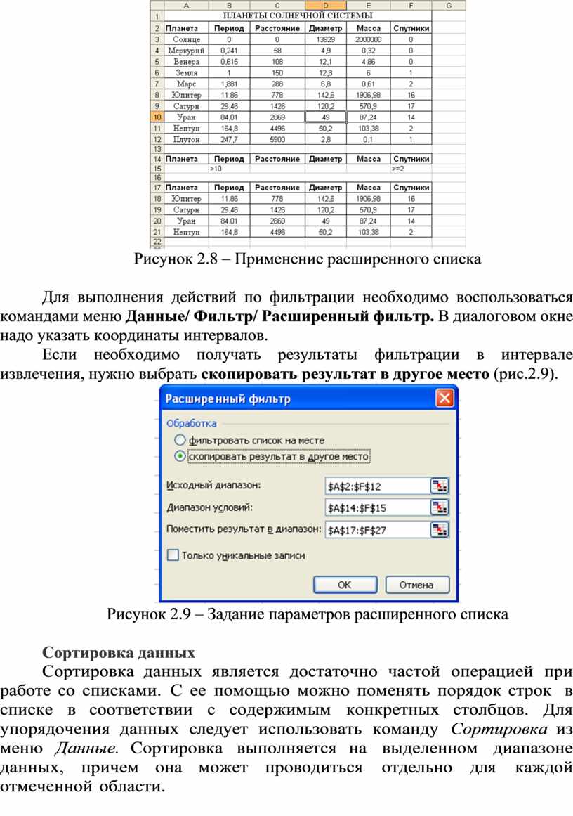 Если необходимо получать результаты фильтрации в интервале извлечения, нужно выбрать скопировать результат в другое место (рис.2.9).