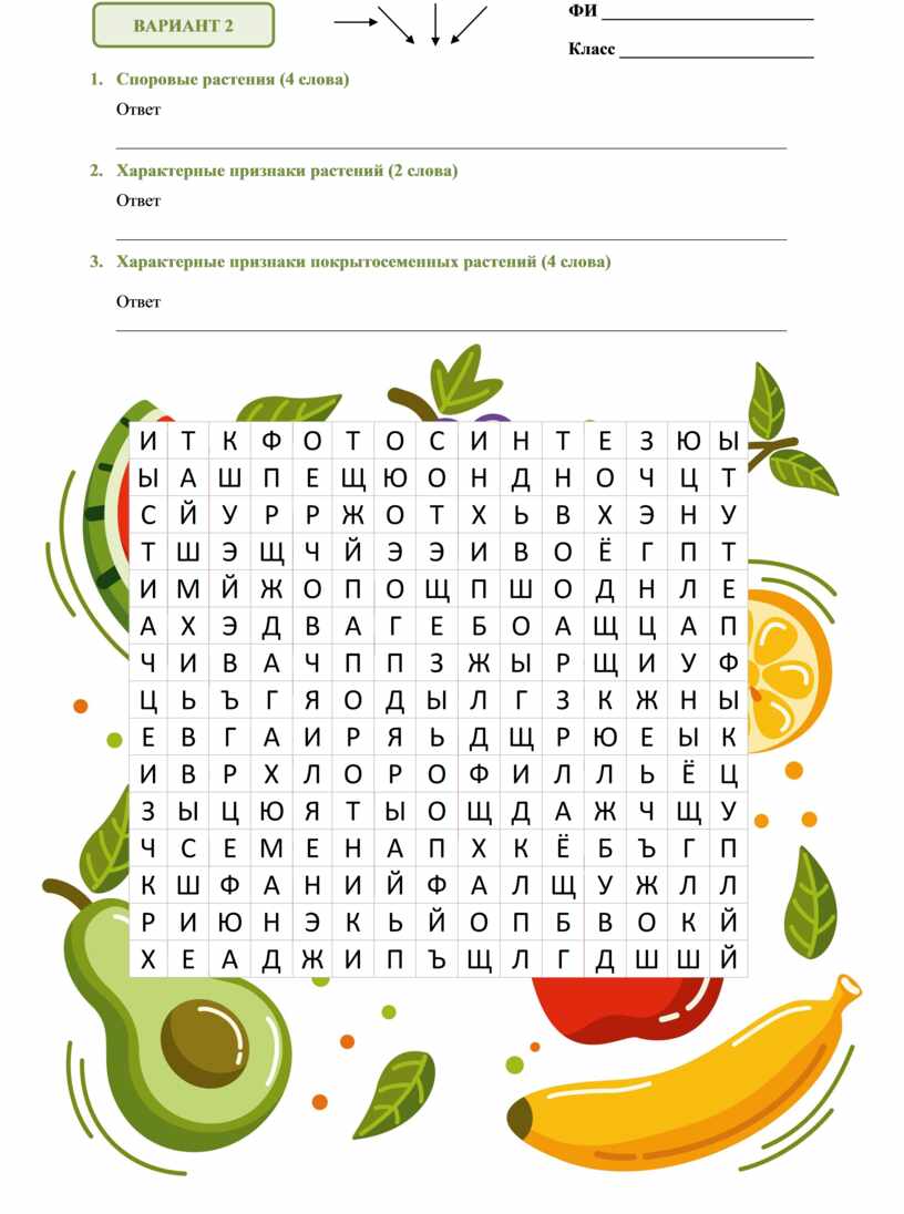 6. Характерные признаки покрытосеменных растений (4 слова)