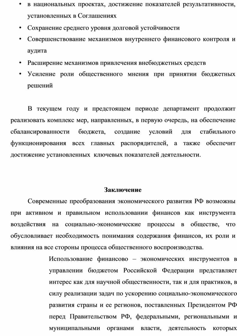 - Обзор финансовых и экономических инструментов управления бюджетом, используемых в Российской Федерации;
