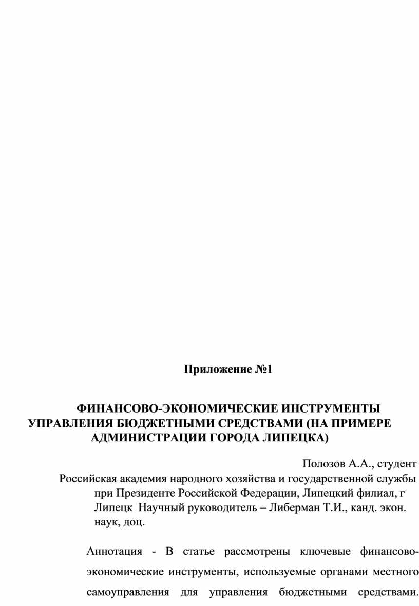 Цель исследования - Определить, какие финансово-экономические инструменты применяются администрацией города Липецка при управлении бюджетными средствами, а также оценить их эффективность и предложить направления для совершенствования.