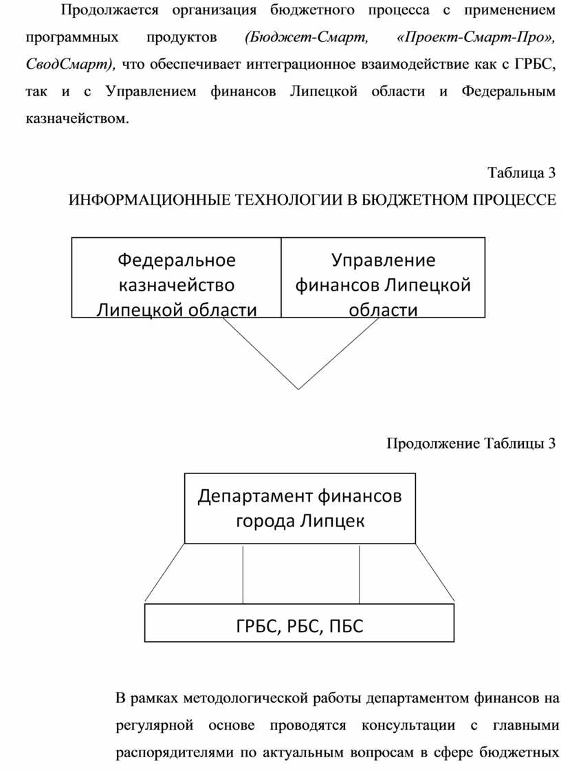 Продолжается организация бюджетного процесса с применением программных продуктов (Бюджет-Смарт, «Проект-Смарт-Про», СводСмарт), что обеспечивает интеграционное взаимодействие как с ГРБС, так и с Управлением финансов Липецкой области и Федеральным казначейством.