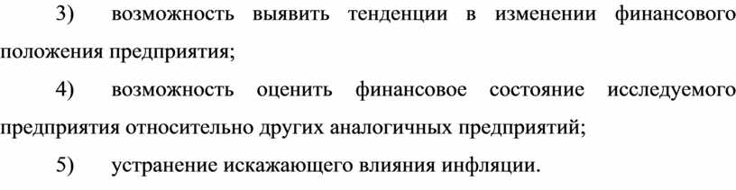 4) возможность оценить финансовое состояние исследуемого предприятия относительно других аналогичных предприятий;