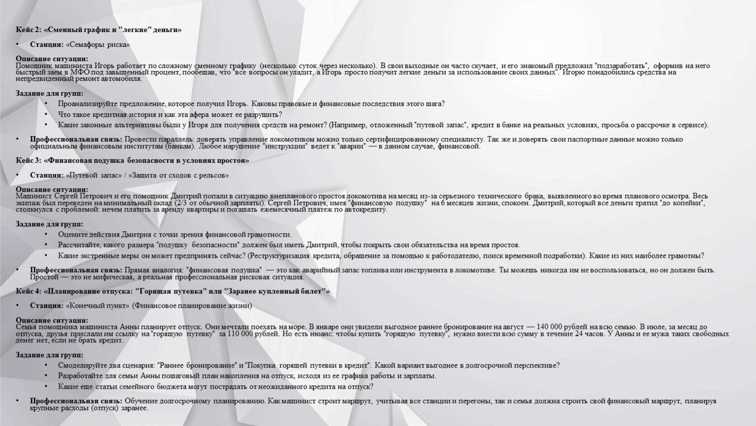 Кейс-стадии: Разбор реальных финансовых ситуаций для помощников машиниста.