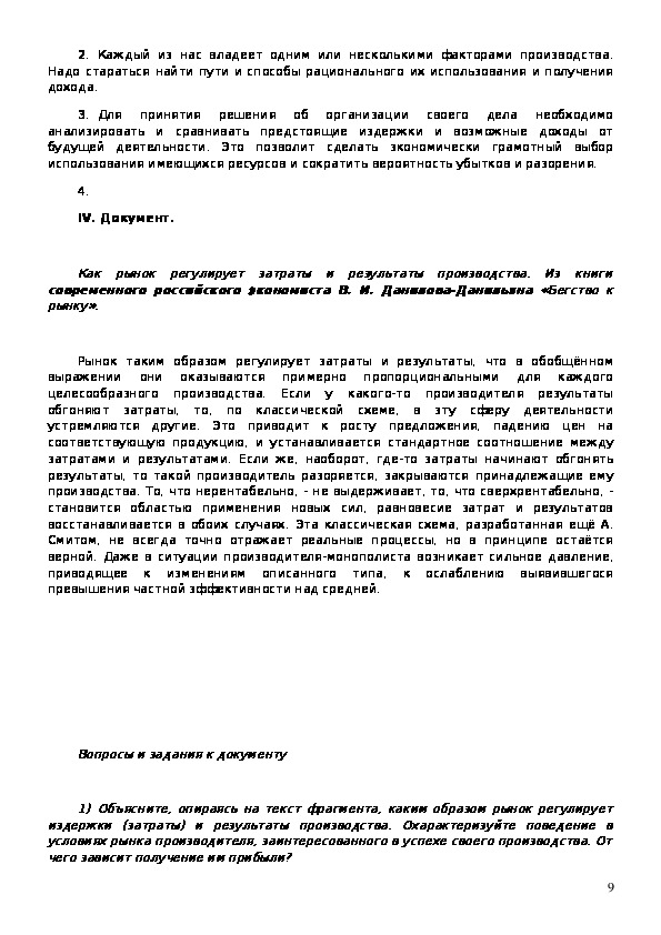 1) Объясните, опираясь на текст фрагмента, каким образом рынок регулирует