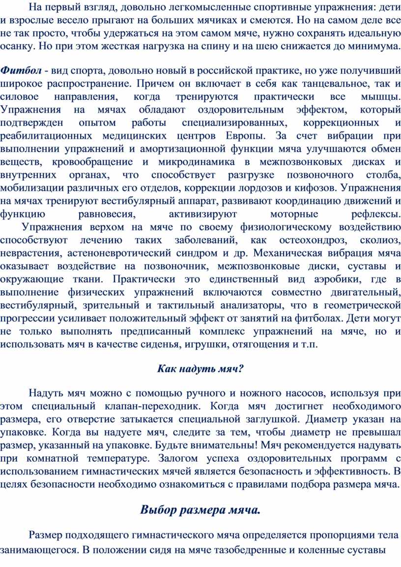 предписанный комплекс упражнений на мяче, но и использовать мяч в качестве