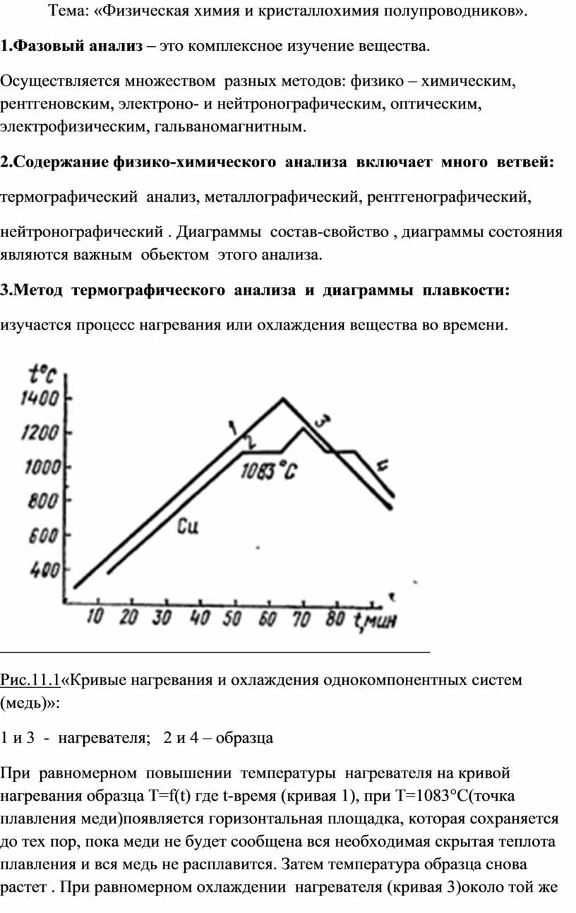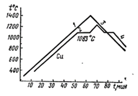 Рис.11.1«Кривые нагревания и охлаждения однокомпонентных систем (медь)»: