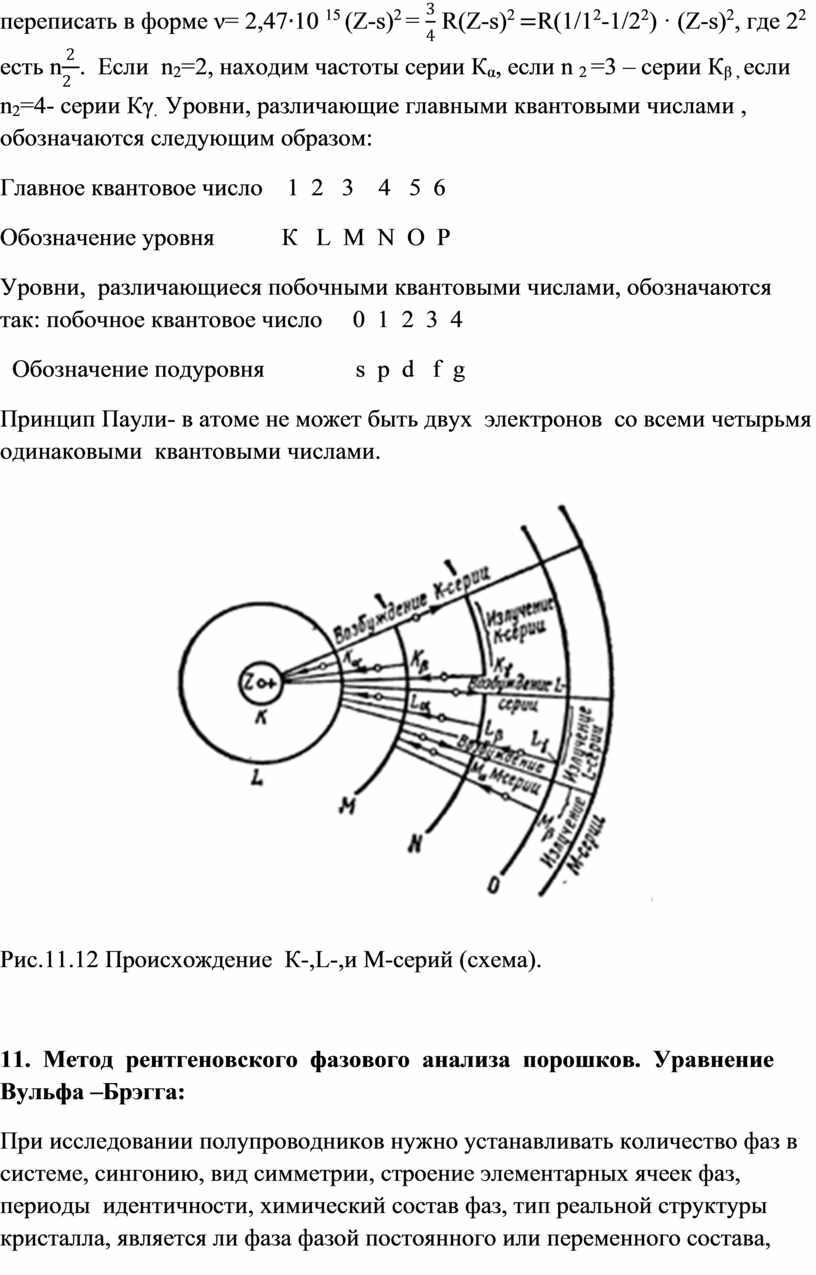 Рис.11.12 Происхождение К-,L-,и М-серий (схема).