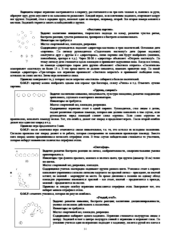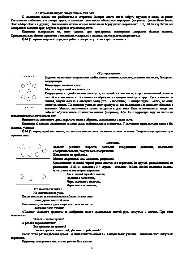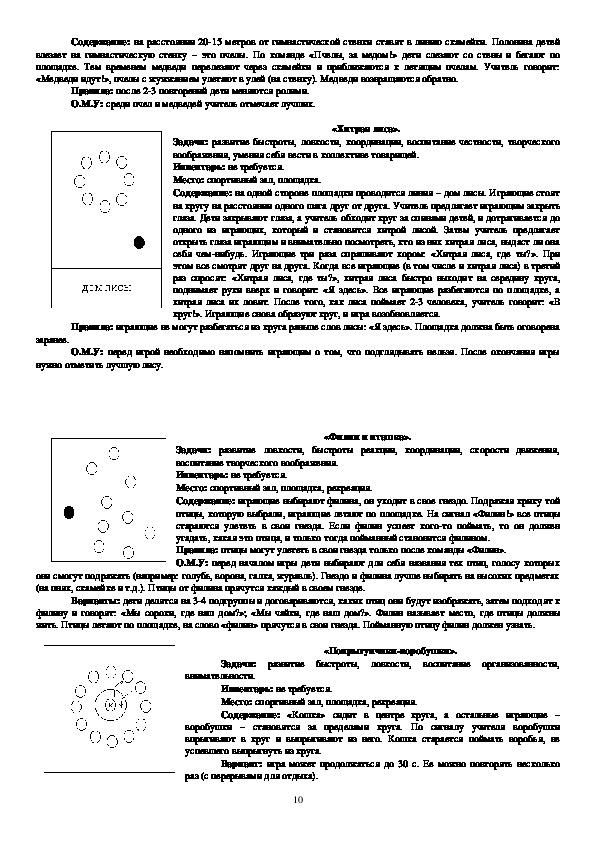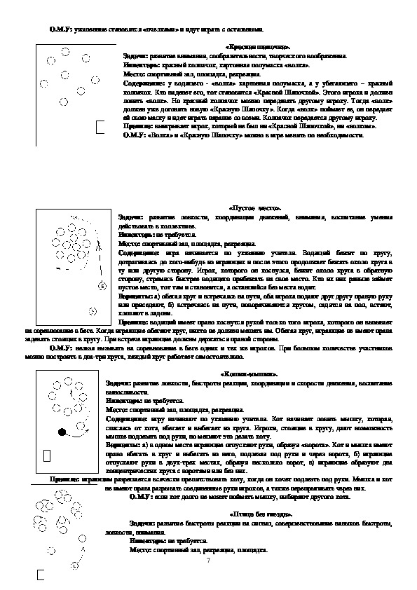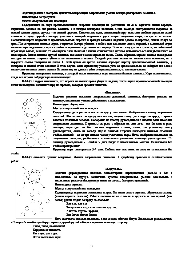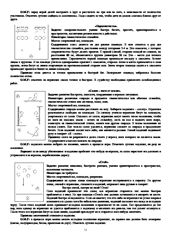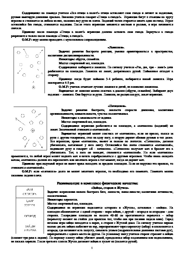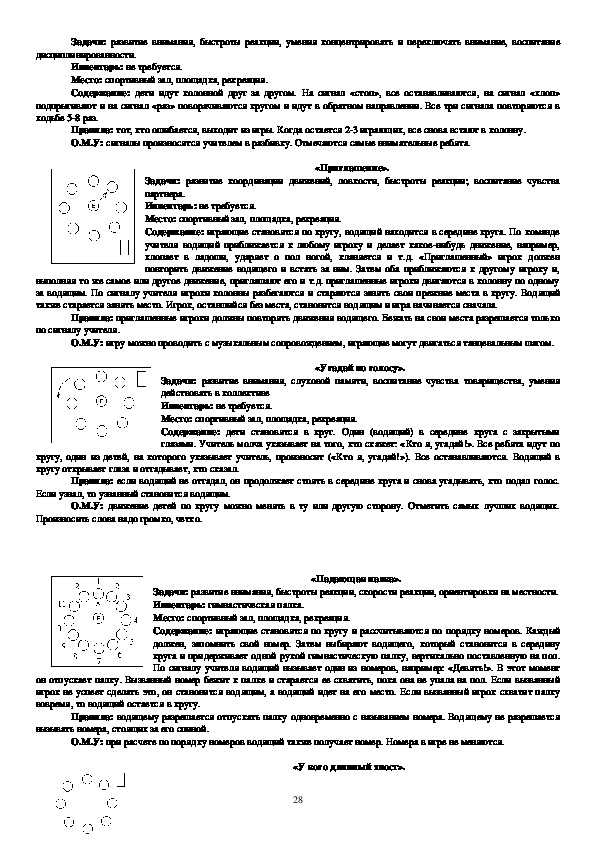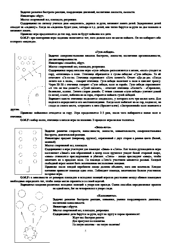 движения», «Быстро по местам», «Ловишки», «Зима и лето», «Попрыгунчикиворобушки», «Через ручеек», «Красная