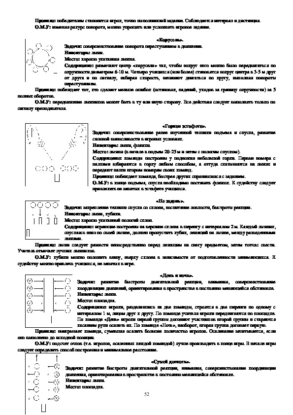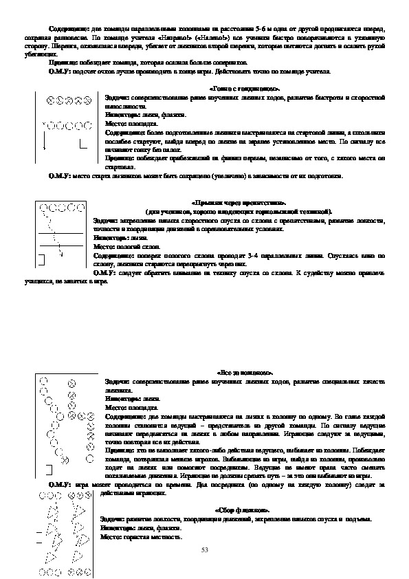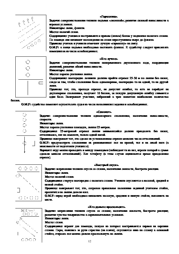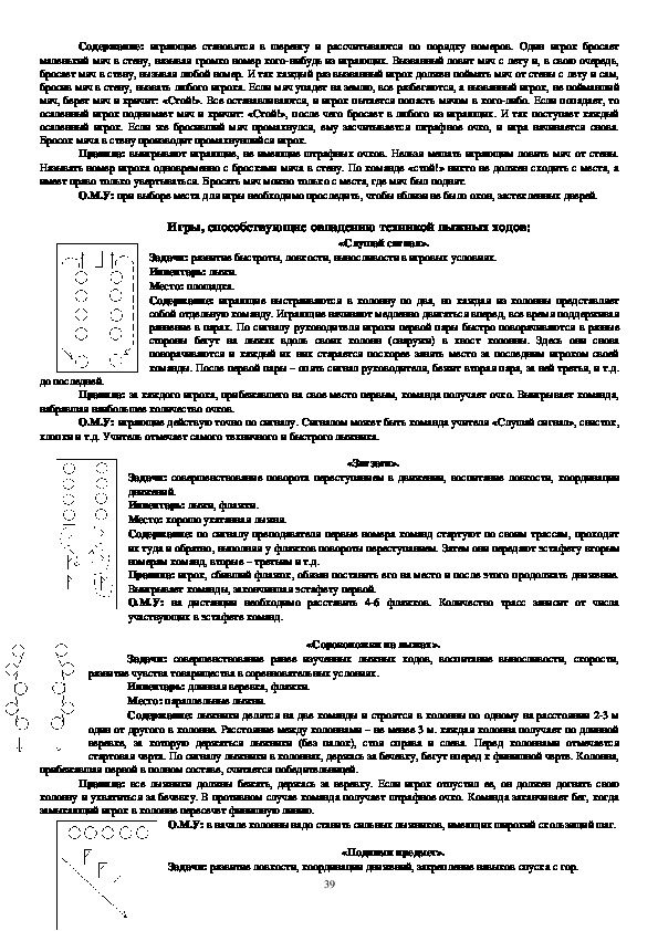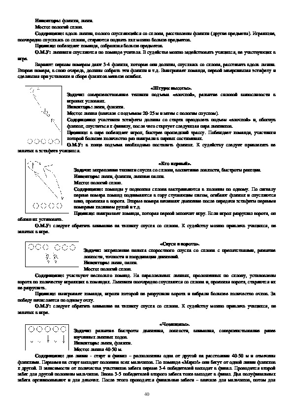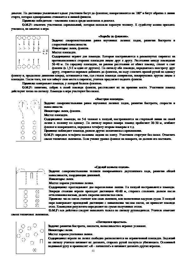 проскользит», «Лыжникидесантники», «Самокат», «Кто лучше», направлены на овладение техникой лыжных ходов,