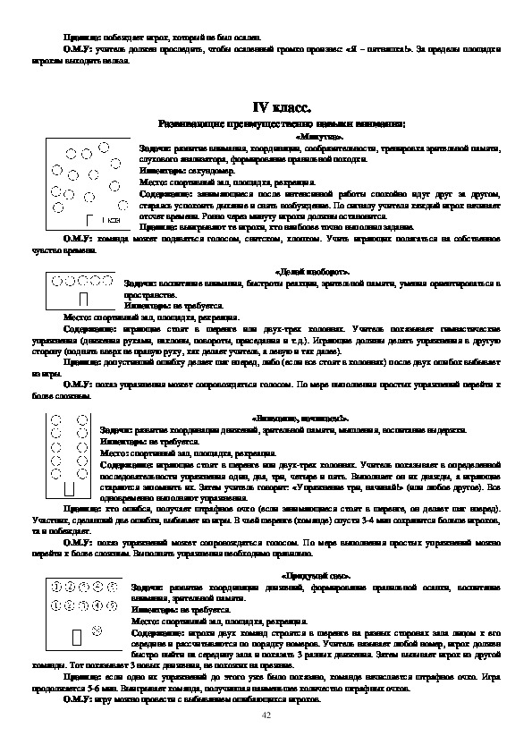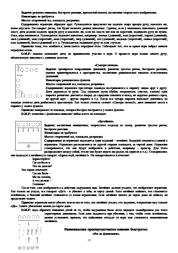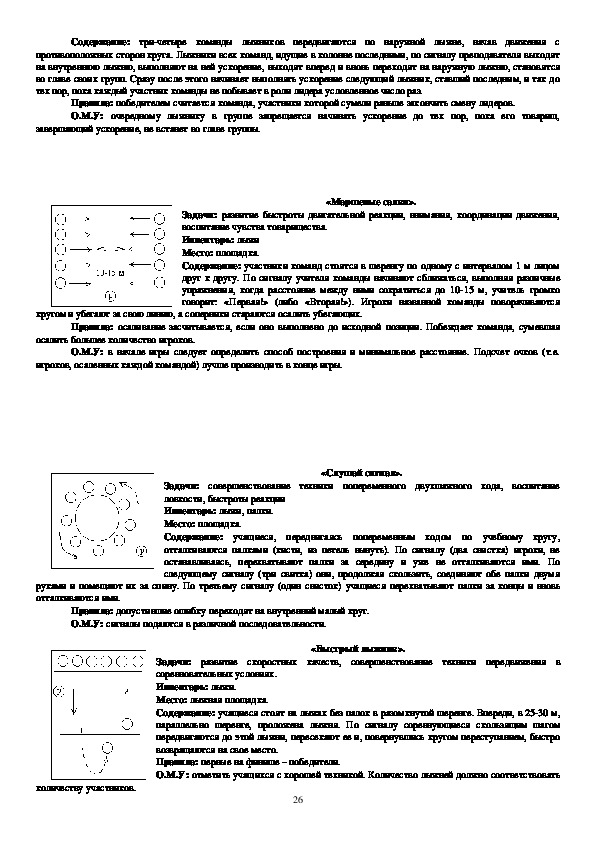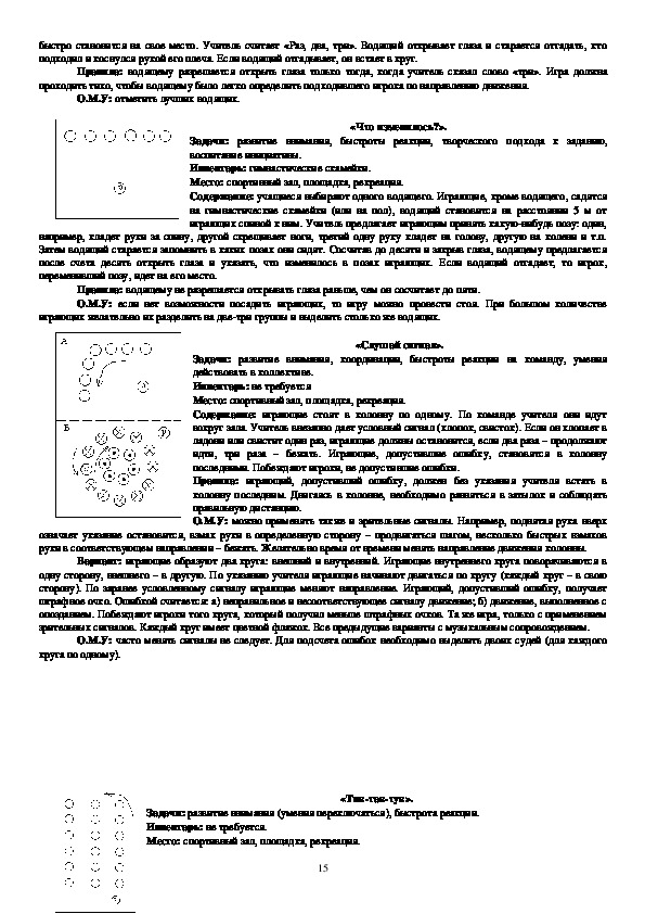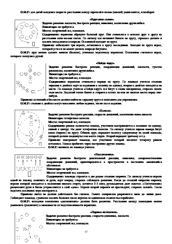 О.М.У: заранее следует познакомить играющих с сигналами, исходным положением, формой