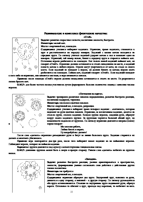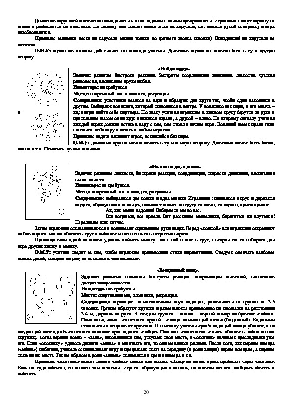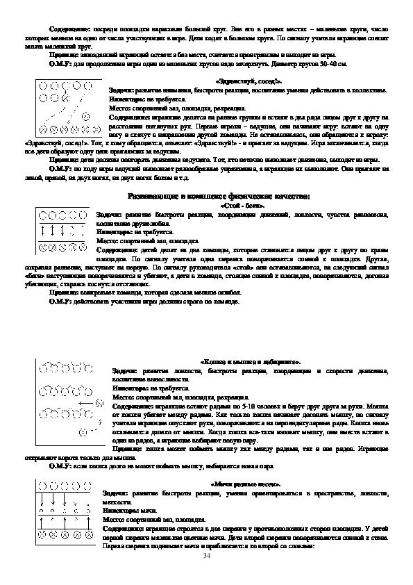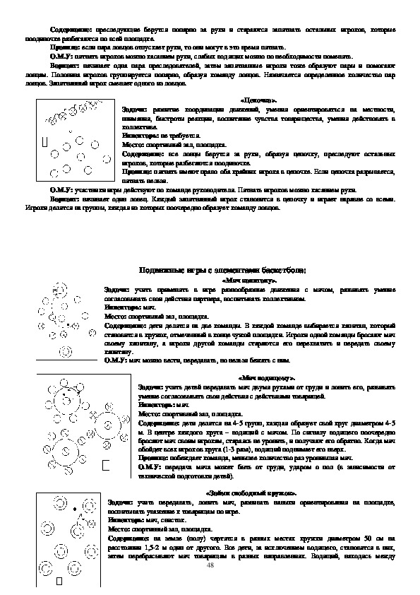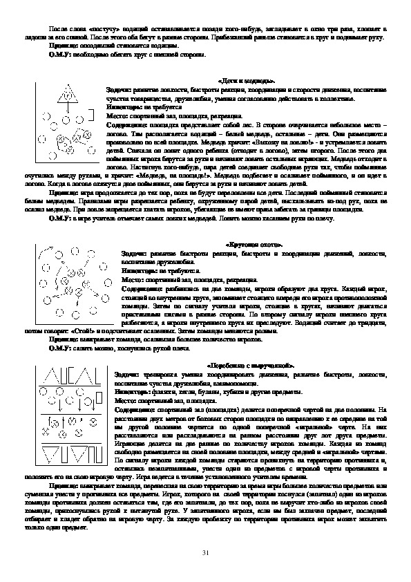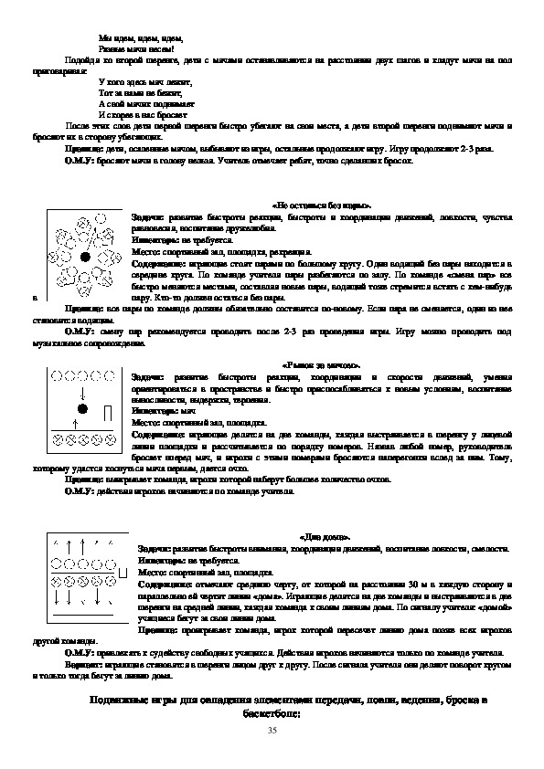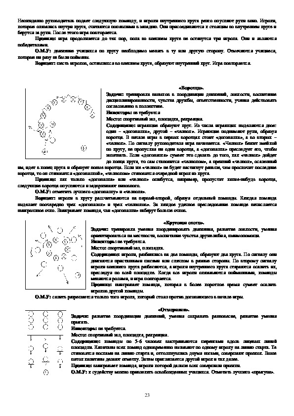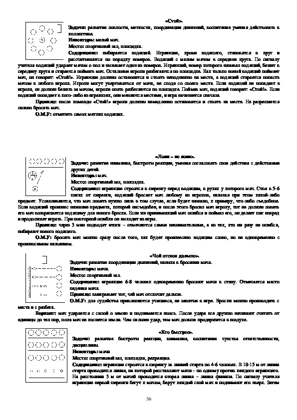 учат правильно ходить, бегать, прыгать, метать, четко выполнять коллективные действия. Данные игры просты по