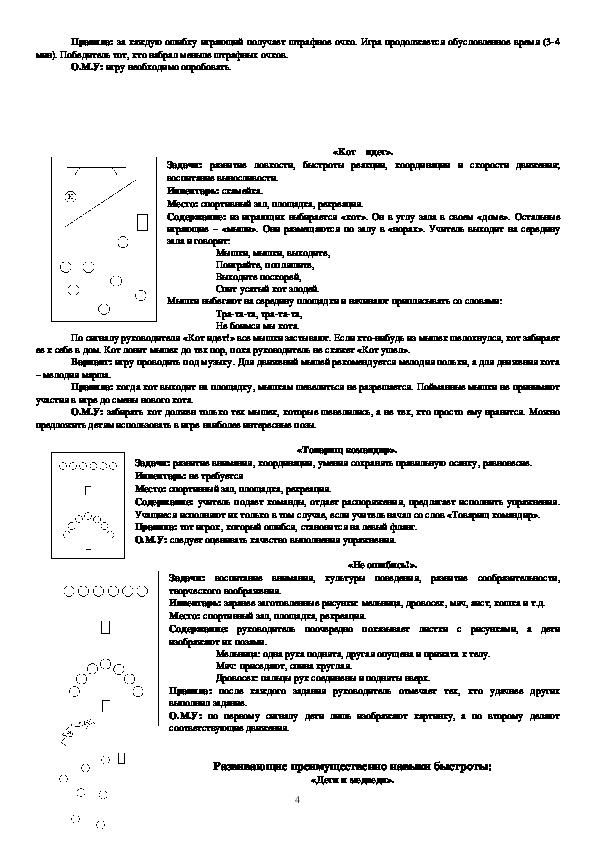 координацию движений, другие физические качества. Игры: «Карлики и великаны», «Кот идет», «Запрещенные
