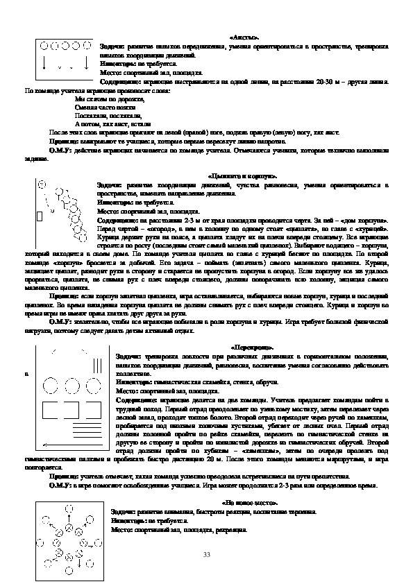 также анатомопсихологические особенности детского организма. В начальных классах подвижные игры желательно