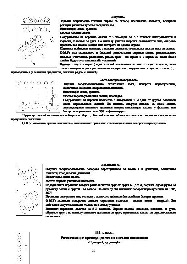Содержание: учащиеся выстраиваются правым (левым) боком у подножия пологого склона.
