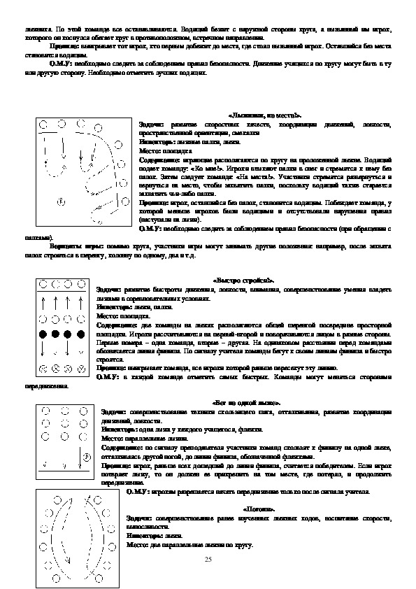 Содержание: 25метровый отрезок лыжни занимающийся должен преодолеть без палок,