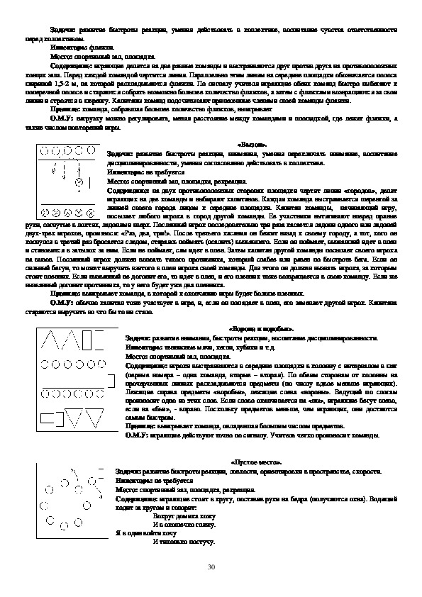 воспринимают объяснение игры, могут ли играть, соблюдая правила, и т.д. Для этого на уроке следует выделить 510 мин