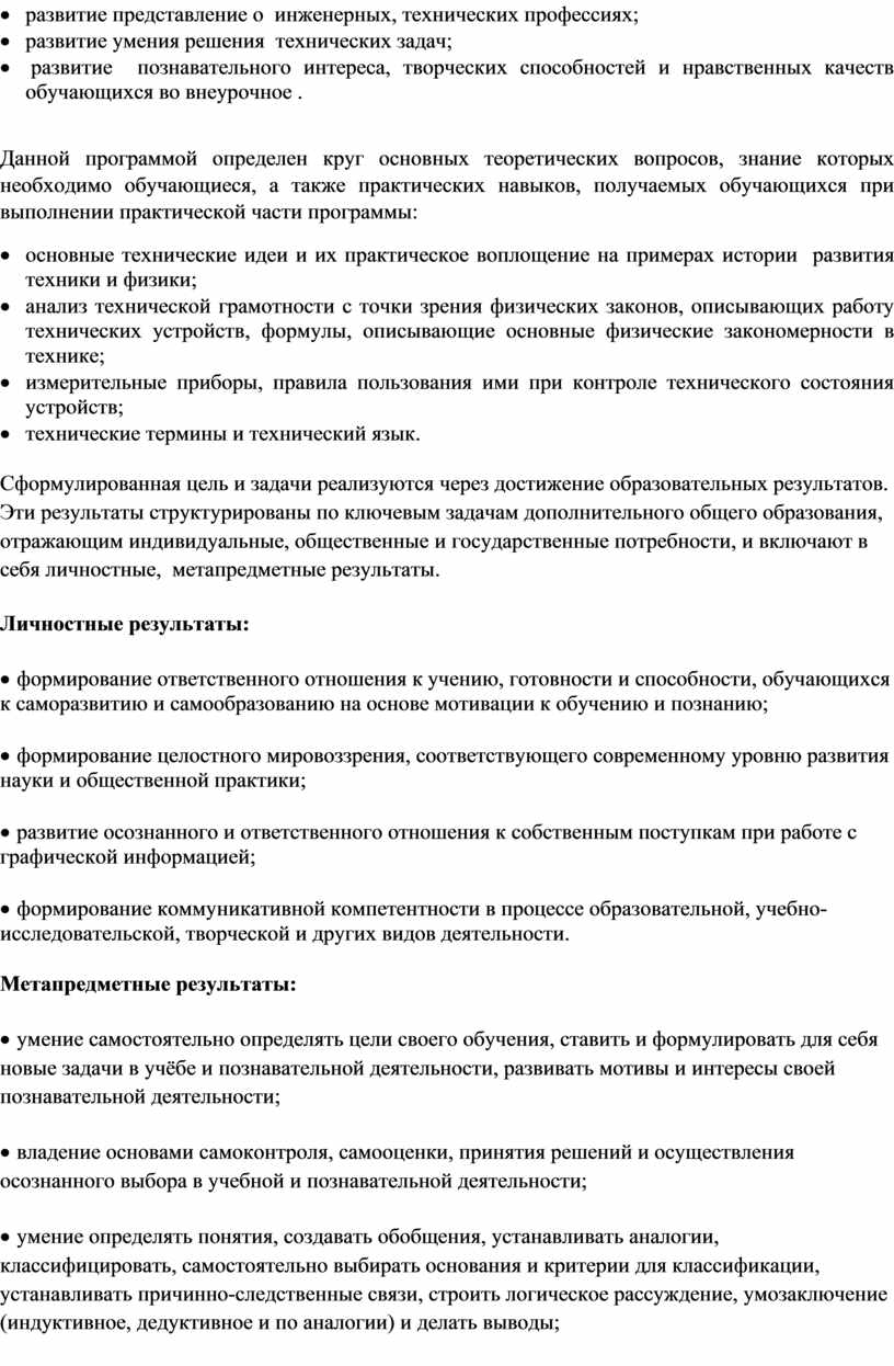 · развивать техническую грамотность, прививать навыки самостоятельной работы с техническими устройствами и приборами на основе современных представлений о современных технологиях и принципах функционирования;